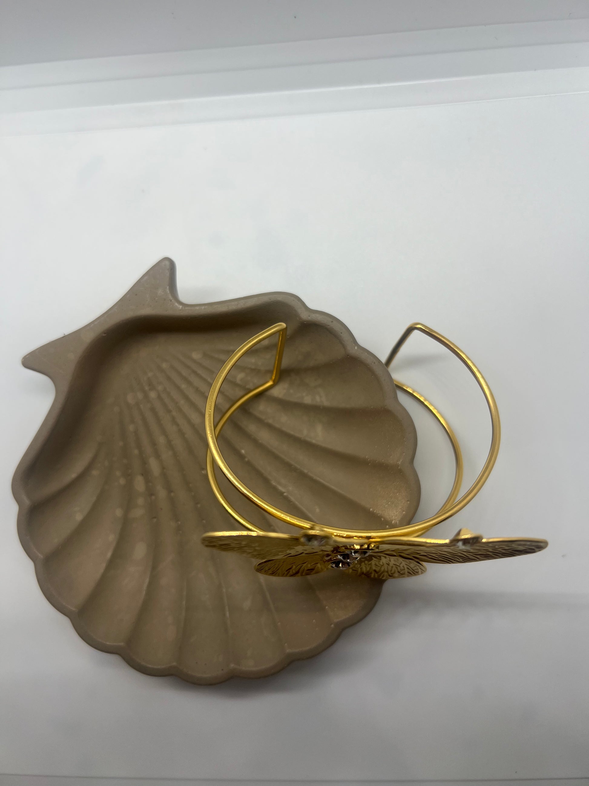 Bracelet de tamaño único con mariposa de 2.3 pulgadas de grande color dorada con detalles simulación diamantes. Materiales Stainless steel.