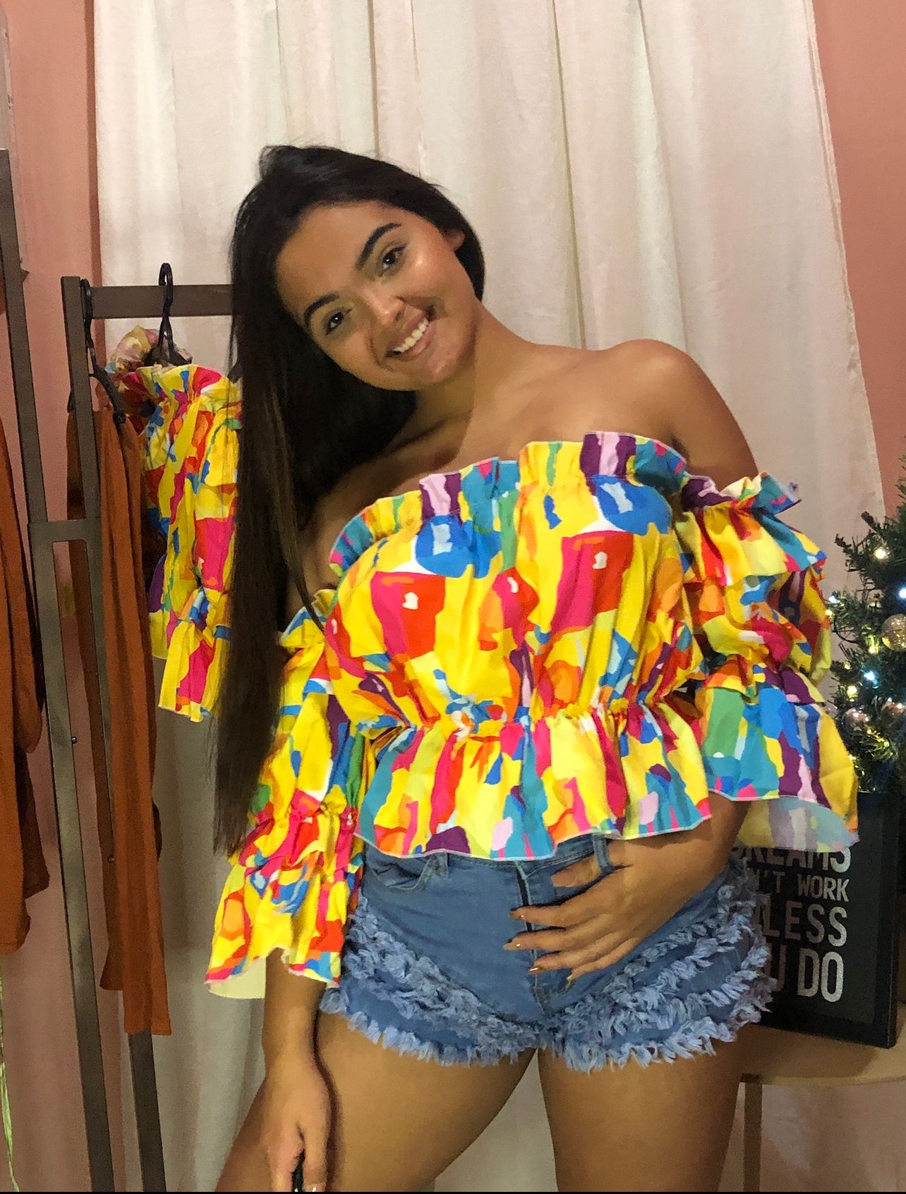 Top colorido y fresco, resalta y favorece el escote de los hombros.