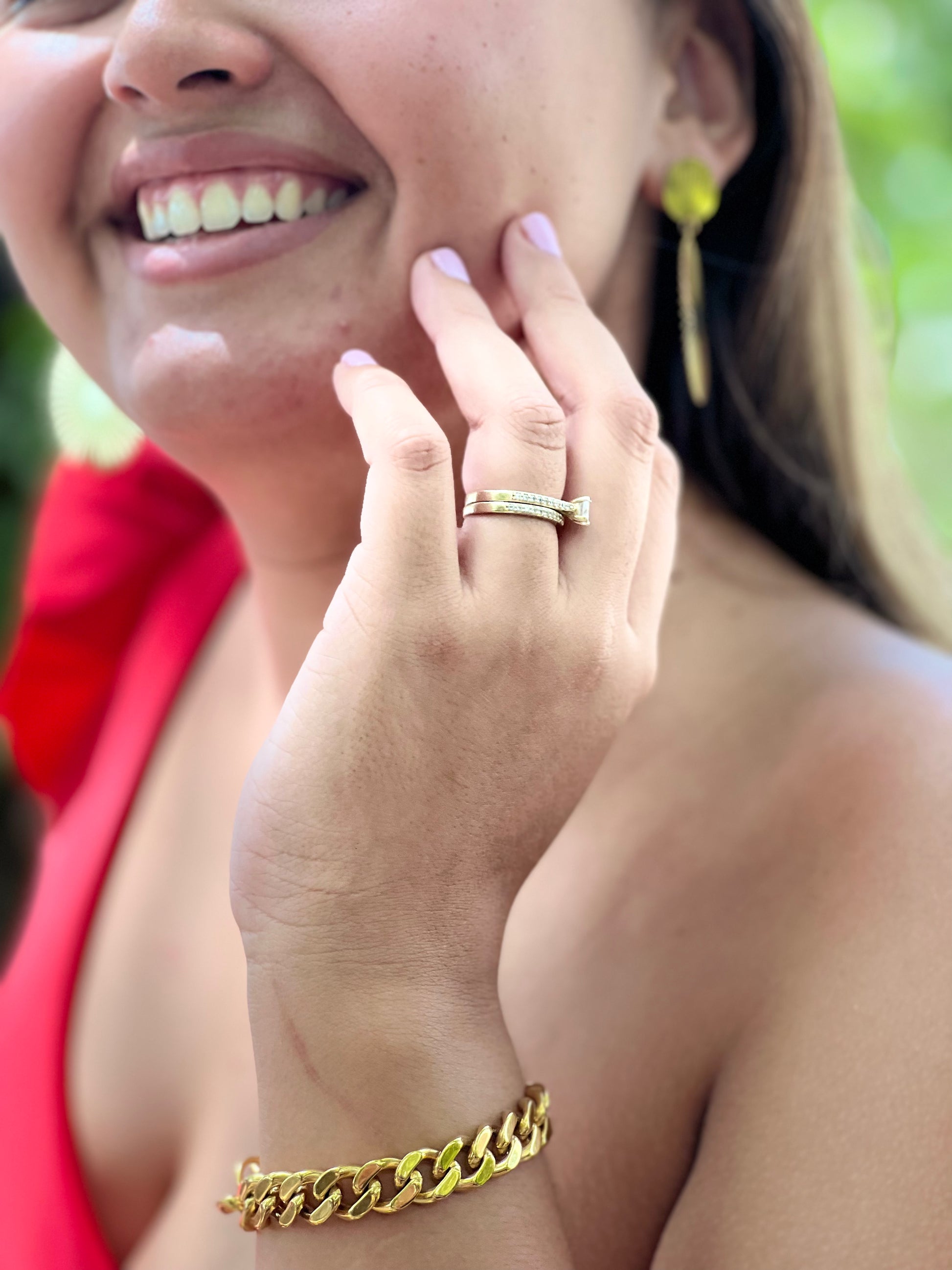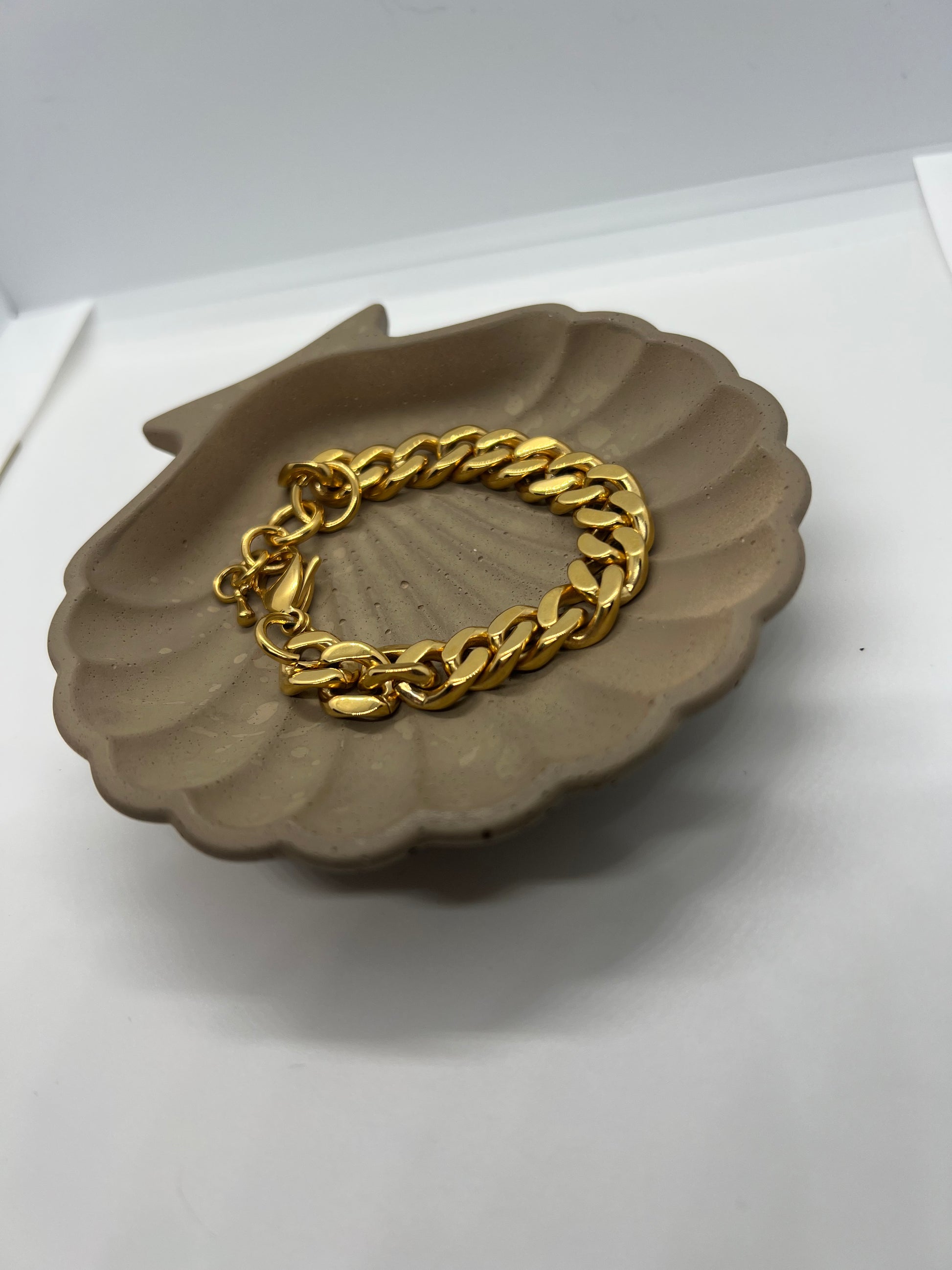 Pulsera dorada estilo cubana en material de Stainless Steel. Versátil para combinar con otros accesorios.